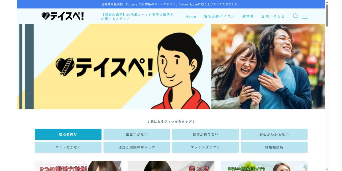 30代男性に向けて婚活情報を発信する「テイスペ!」様に、ベルロード縁結びサポートが紹介されました。非常に細かいところまで情報を収集し、わかりやすくまとめられた記事で、婚活において役立つこと間違いなしです。ぜひご参考ください。